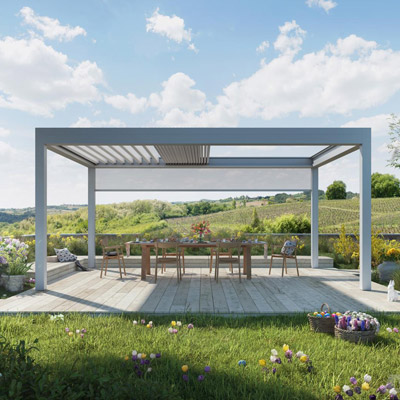 Entdecken Sie unsere flexiblen Lamellendächer und richten Sie sich Ihr ganz persönliches Rückzugsgebiet ein. Denn mit unseren Lamellendächern steht Ihnen immer ein schattiges und geschütztes Plätzchen zur Verfügung, das Sie bei jedem Wetter in vollen Zügen genießen können.